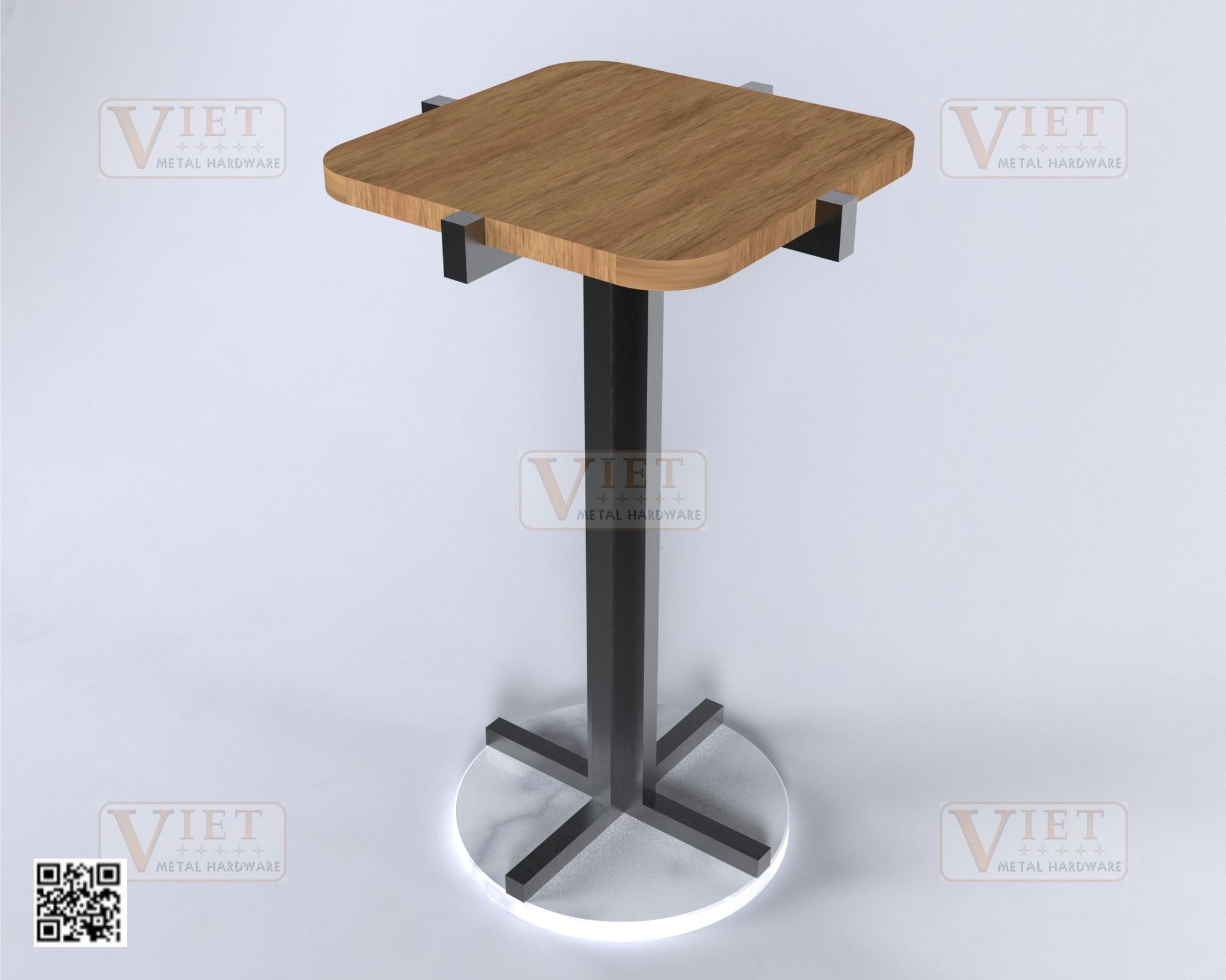 Material: Stainlees Steel #304, a wood tabletop and stone base.