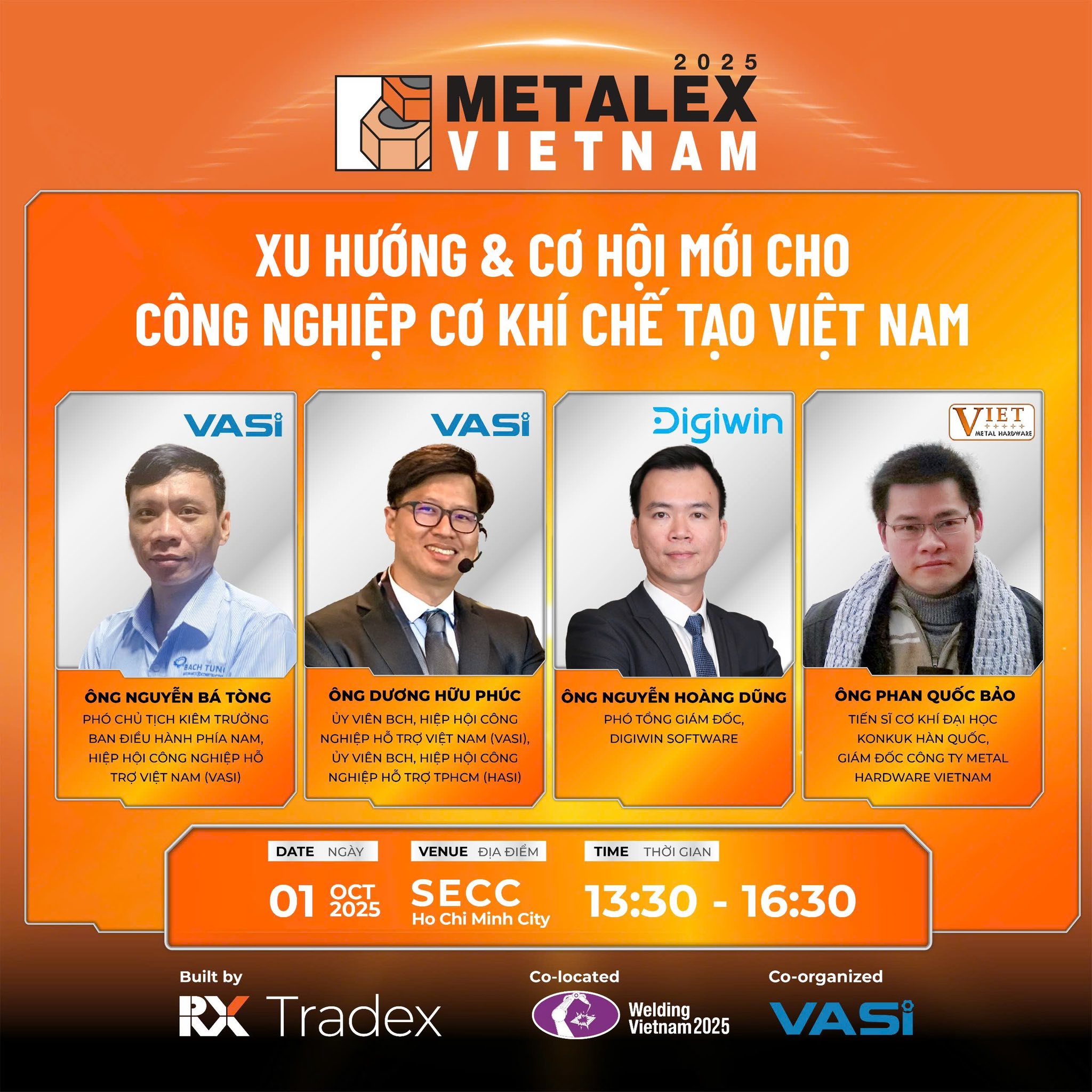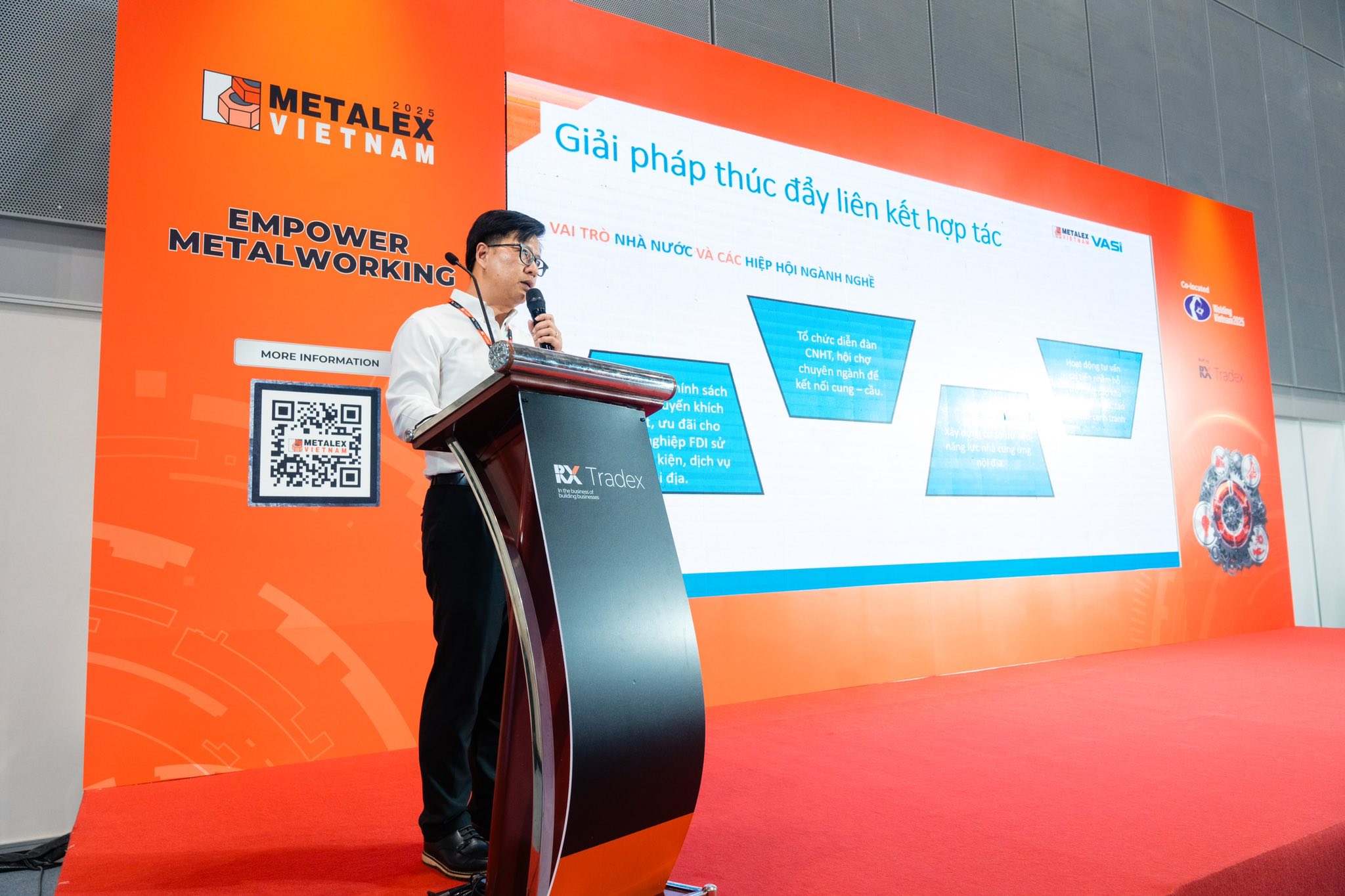 Thuộc khuôn khổ Triển lãm METALEX Vietnam 2025, chiều ngày 1/10/2025 VASI phối hợp RX Tradex tổ chức thành công Seminar chia sẻ và kết nối kinh doanh “Xu hướng & Cơ hội mới cho Công nghiệp Hỗ trợ Việt Nam trước biến động chính sách thương mại toàn cầu”