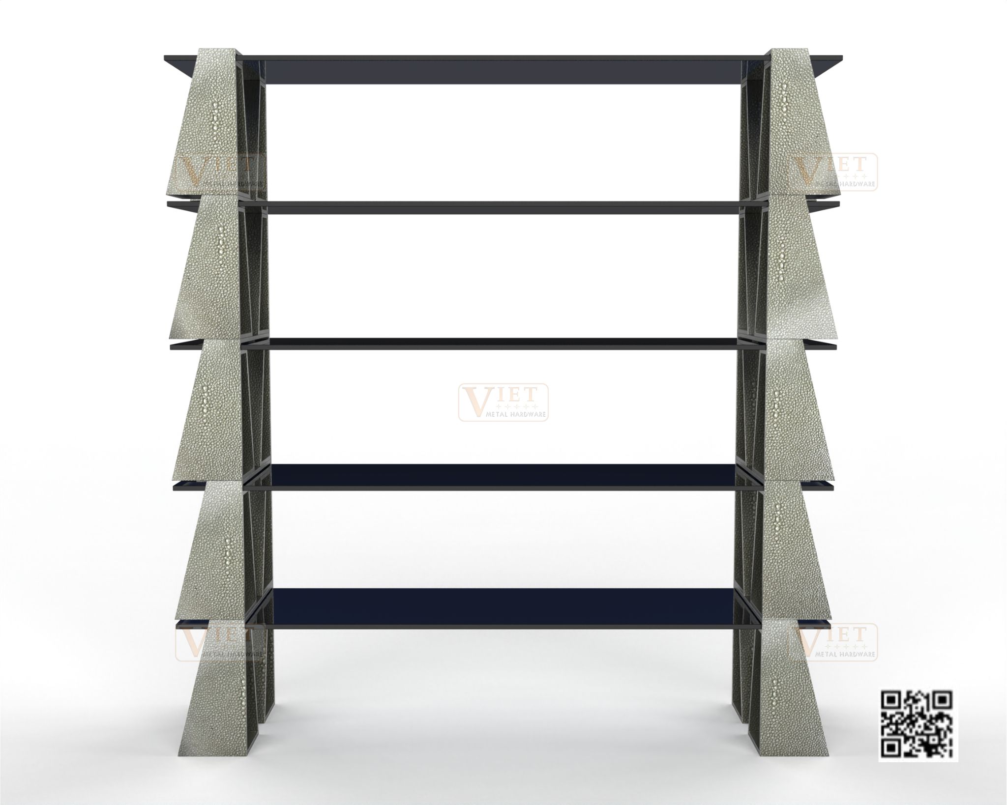 Material: Mix Steel Iron with Faux Shagreen, Tempered glass shelves