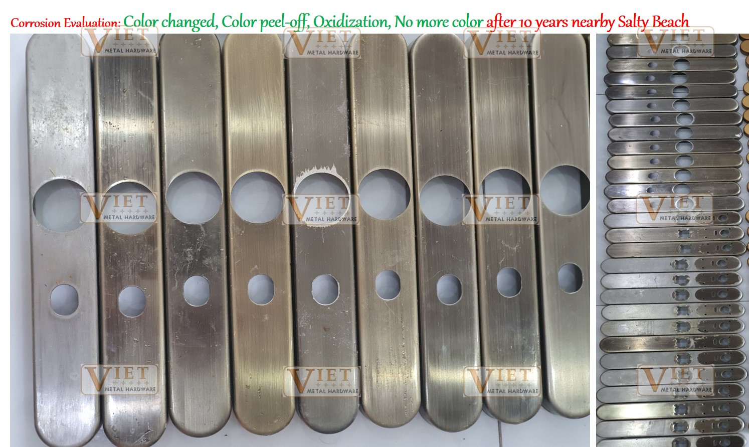This 04 stars resort passed 10 years using. The location and weather condition: nearby the salty beach of Phan Thiet. Corrosion can easily appear at all of items after the first 02 years using, especially on Iron, Stainless Steel, Aluminium, Zinc Alloy, Brass .