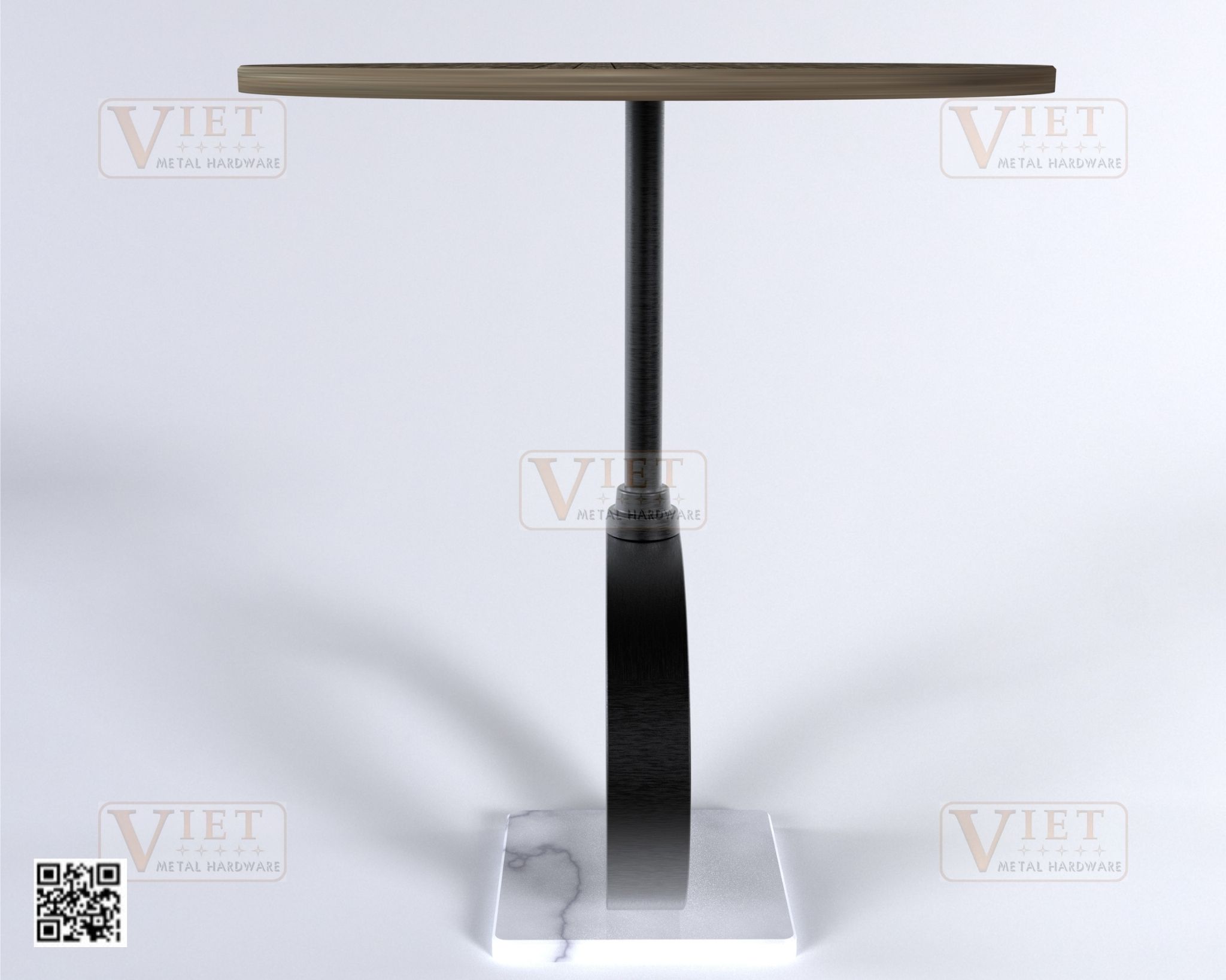 Material: Steel Iron, a wood tabletop and Stone base.